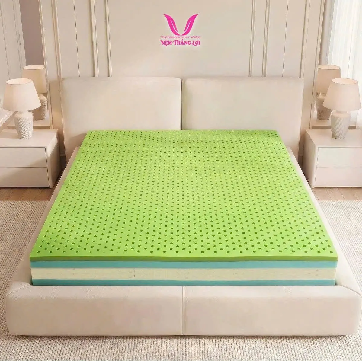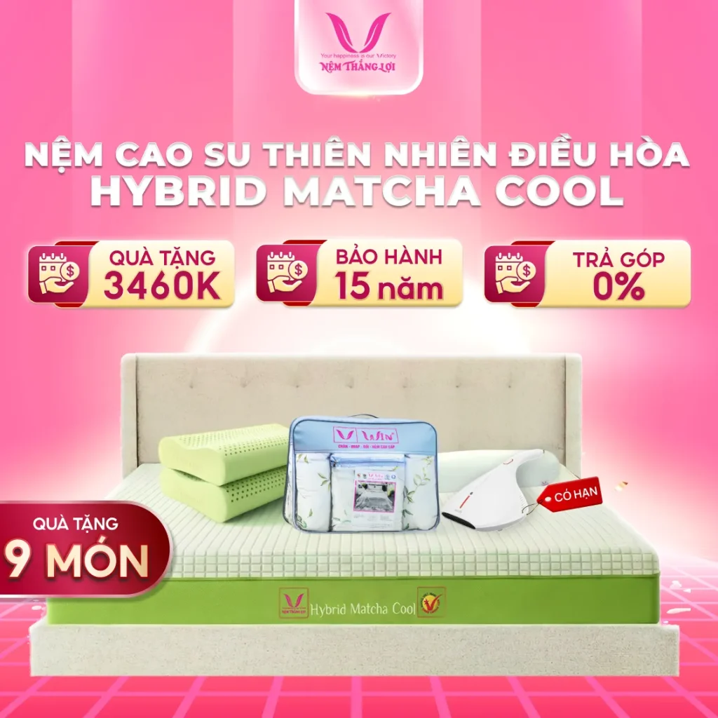Giấc ngủ chất lượng không chỉ giúp cơ thể phục hồi mà còn quyết định năng lượng, tinh thần và sức khỏe tổng thể mỗi ngày. Hiểu được điều đó, Thắng Lợi mang đến sản phẩm nệm mới – Nệm Cao Su Thiên Nhiên Điều Hòa Hybrid Matcha Cool, chiếc nệm được thiết kế giải quyết nhiều vấn đề giấc ngủ cho người Việt.