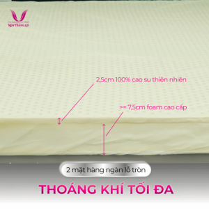 - Foam Cao Cấp: Lớp foam dày 7.5cm ở mặt dưới cung cấp độ cứng vừa phải để hỗ trợ và giữ cho nệm không bị lún quá mức. Foam cao cấp giúp nệm có độ đàn hồi tốt và không bị biến dạng sau thời gian dài sử dụng.