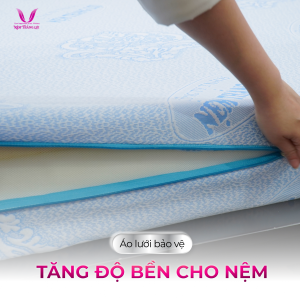 - Lớp Áo Lưới Bảo Vệ: Nệm còn được bảo vệ bởi một lớp áo lưới, giúp giữ ruột nệm chắc chắn hơn và tăng độ bền cho sản phẩm. Lớp áo lưới này còn giúp nệm thông thoáng, ngăn ngừa ẩm mốc và kéo dài tuổi thọ của nệm.