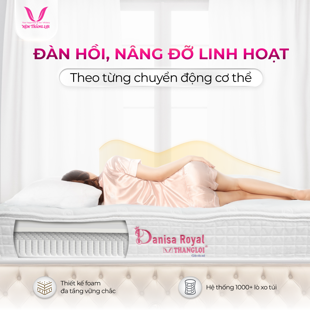 Nệm Lò Xo Túi Độc Lập Cao Cấp Thắng Lợi Danisa Royal